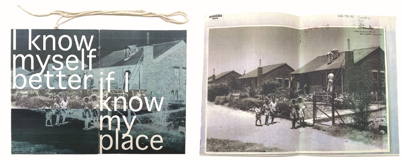 Minenkulu Ngoyi, Issac Zavale & @madeyoulook, if I know my place (2022). Covers (l) and internal spread (r). Photographs: David Paton