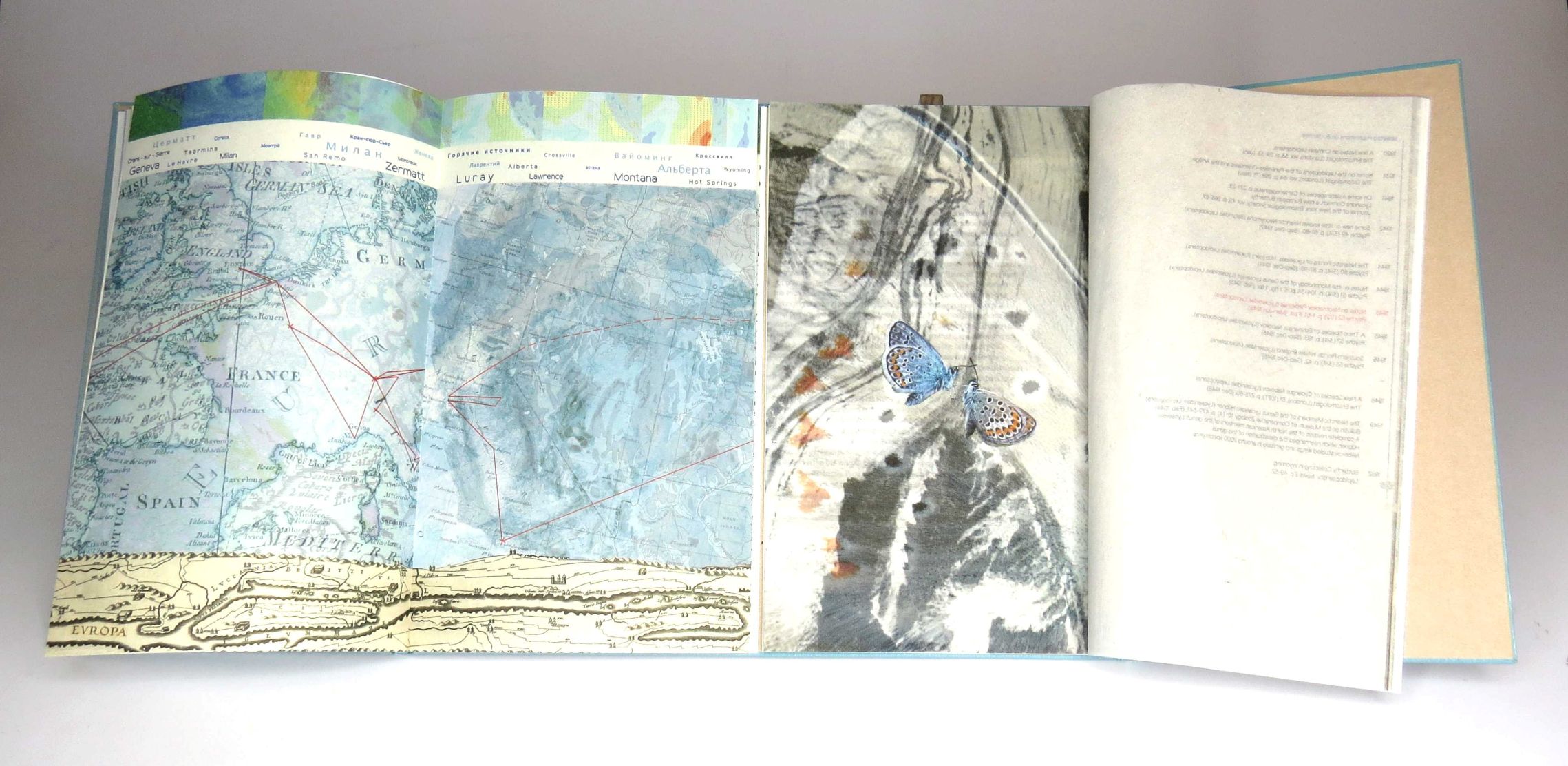 Reference note: A research based visual exploration of Vladimir Nabokov's parallel passions as a writer and an entomologist, referring to his groundbreaking work on the Polyommatus blue butterfly. The colours of the book covers and iridescent paper draw attention to the UV-light-reflective structure of the butterflies’ wings.