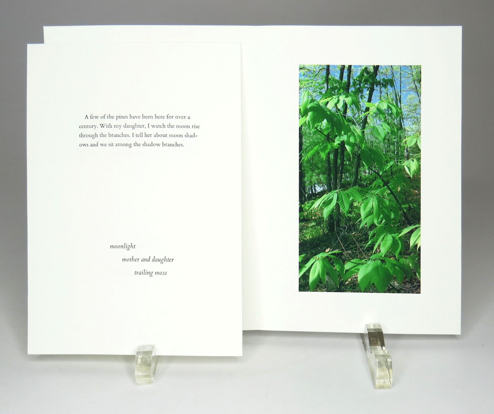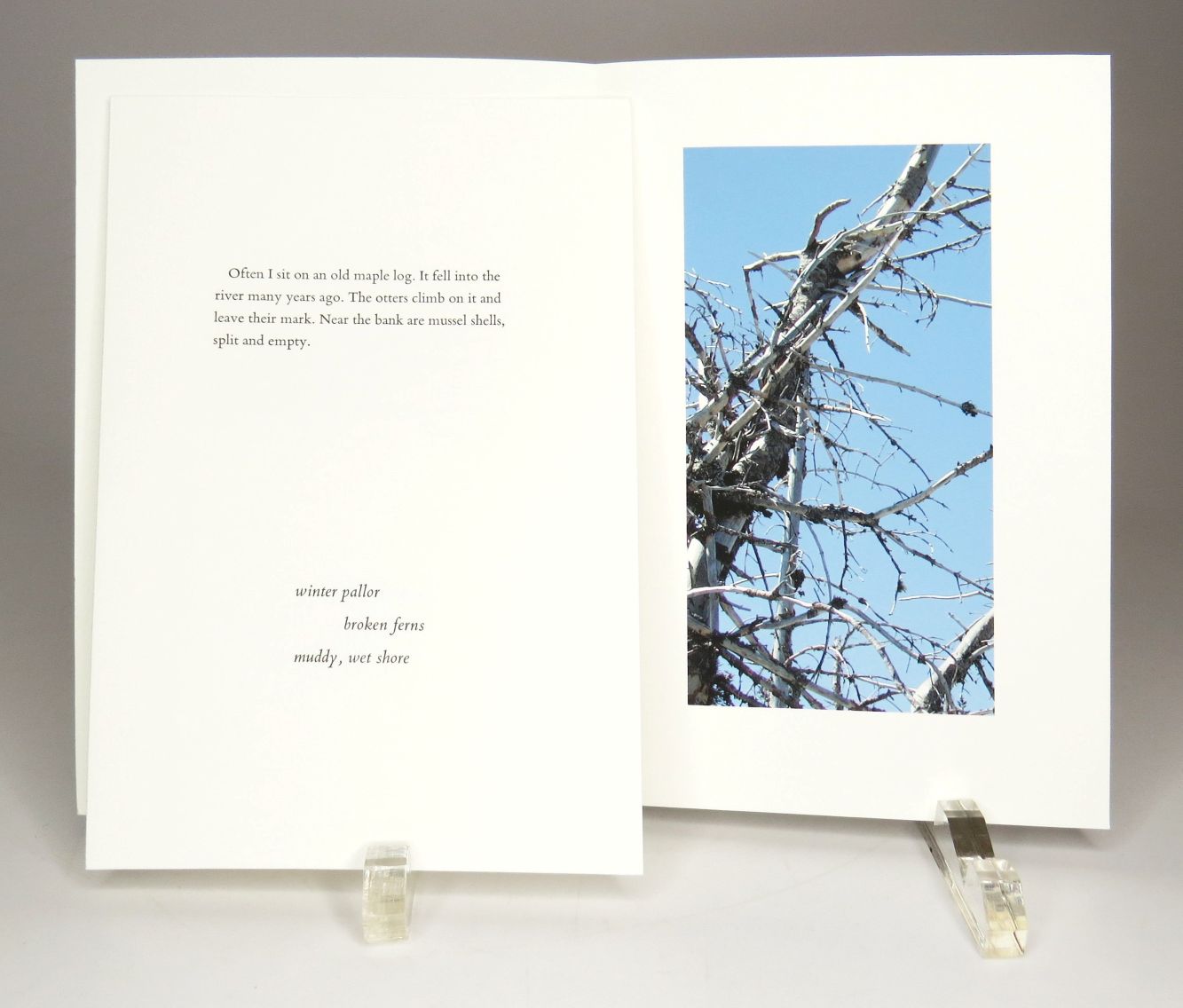 Hoffman kept a journal on daily visits to an uninhabited island in the Nashua River in Pepperell, Massachusetts at the same time as her mother was traveling all over the world in her struggle with cancer. A portrait emerges of both mother and daughter from their early experiences together in New Guinea to Hoffman's return in 1998 to the Trobriands with her mother's ashes. The book traces in distilled language the interwoven journey of their lives together. Through word and image Hoffman travels to the Trobriand Islands in New Guinea where she lived when she was fifteen and then returned to New Guinea in 1998 with her ashes.